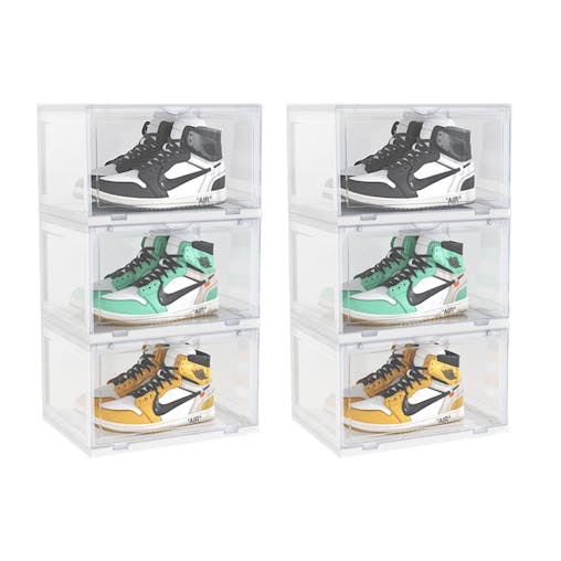 SOGA2X 3 Tier Transparent Portable Shoe Organiser Sneaker Footwear Folding Plastic Bin Stackable Storage Box with Magnetic Door