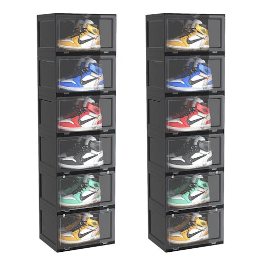 SOGA 2X 6 Tier Black Portable Shoe Organiser Sneaker Footwear Folding Plastic Bin Stackable Storage Box with Magnetic Door