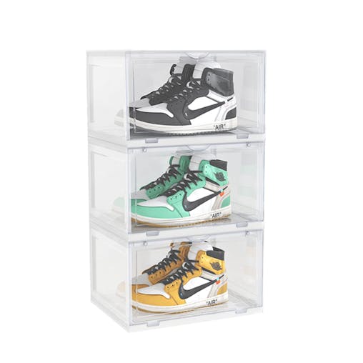 SOGA 3 Tier Transparent Portable Shoe Organiser Sneaker Footwear Folding Plastic Bin Stackable Storage Box with Magnetic Door