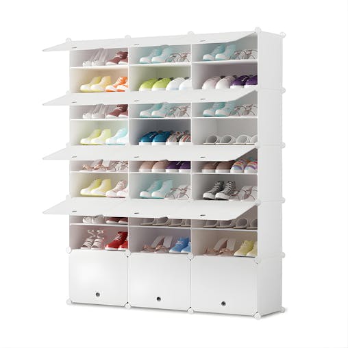 SOGA 9 Tier 3 Column White Shoe Rack Organizer Sneaker Footwear Storage Stackable Stand Cabinet Portable Wardrobe with Cover