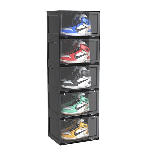 SOGA 5 Tier Black Portable Shoe Organiser Sneaker Footwear Folding Plastic Bin Stackable Storage Box with Magnetic Door
