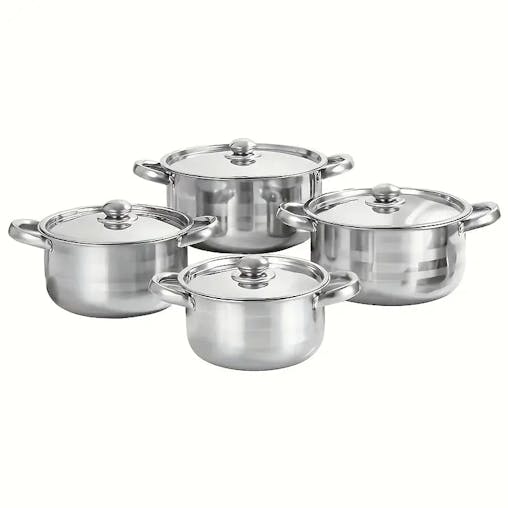 NNETM Premium 8-Piece Stainless Steel Pot Set - Heavy-Duty