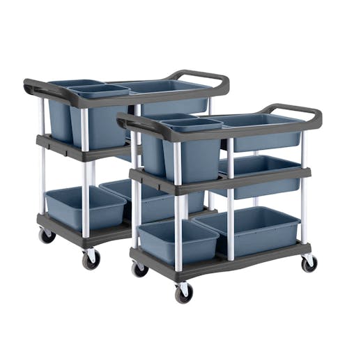 SOGA 2X 3-Tier Commercial Soiled Food Trolley Dirty Plate Cart Five Buckets Kitchen Food Utility