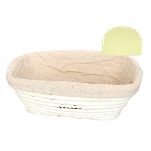 Loyal Banneton Rattan Proofing Basket Long & Liner 24x12cm & Half Moon Scraper