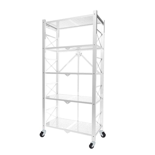 SOGA 5 Tier Steel White Foldable Display Stand Multi-Functional Shelves Storage Organizer with Wheels