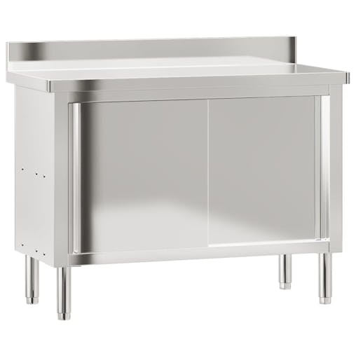 NNEVL Kitchen Work Table with Sliding Doors Stainless Steel