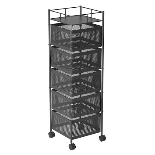 SOGA 5 Tier Steel Square Rotating Kitchen Cart Multi-Functional Shelves Storage Organizer with Wheels