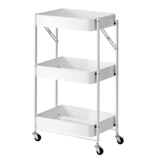 SOGA 3 Tier Steel White Foldable Kitchen Cart Multi-Functional Shelves Storage Organizer with Wheels