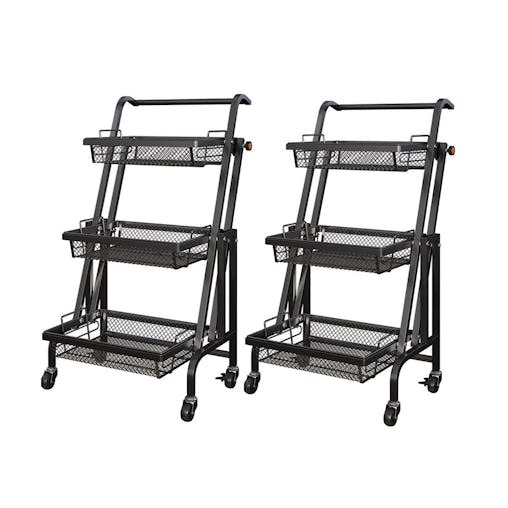 SOGA 2X 3 Tier Steel Black Adjustable Kitchen Cart Multi-Functional Shelves Portable Storage Organizer with Wheels
