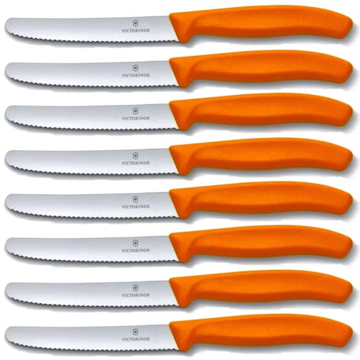 Victorinox Steak & Tomato Knife Pistol Grip 11cm Orange Set x 8 Knives