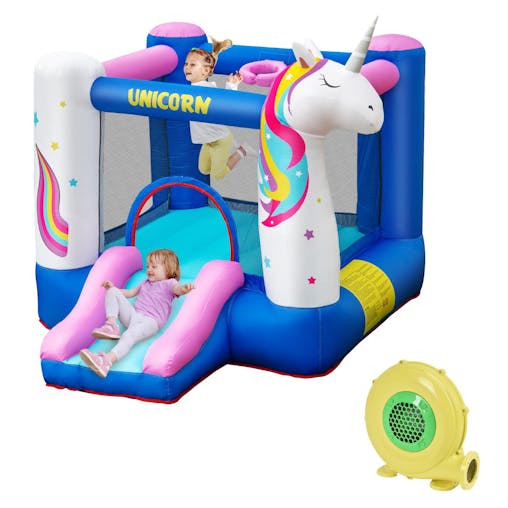 NNECW Inflatable Unicorn Theme Bounce House with Slide & Basketball Hoop with Blower
