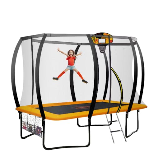 NNEDPE Kahuna Trampoline 8 ft x 14ft Oval with Basketball Set - Orange