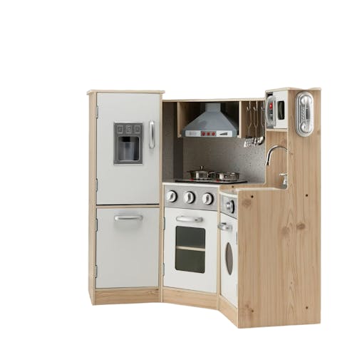 NNECW Wooden Pretend Corner Playset with Cookware Accessories for Kids